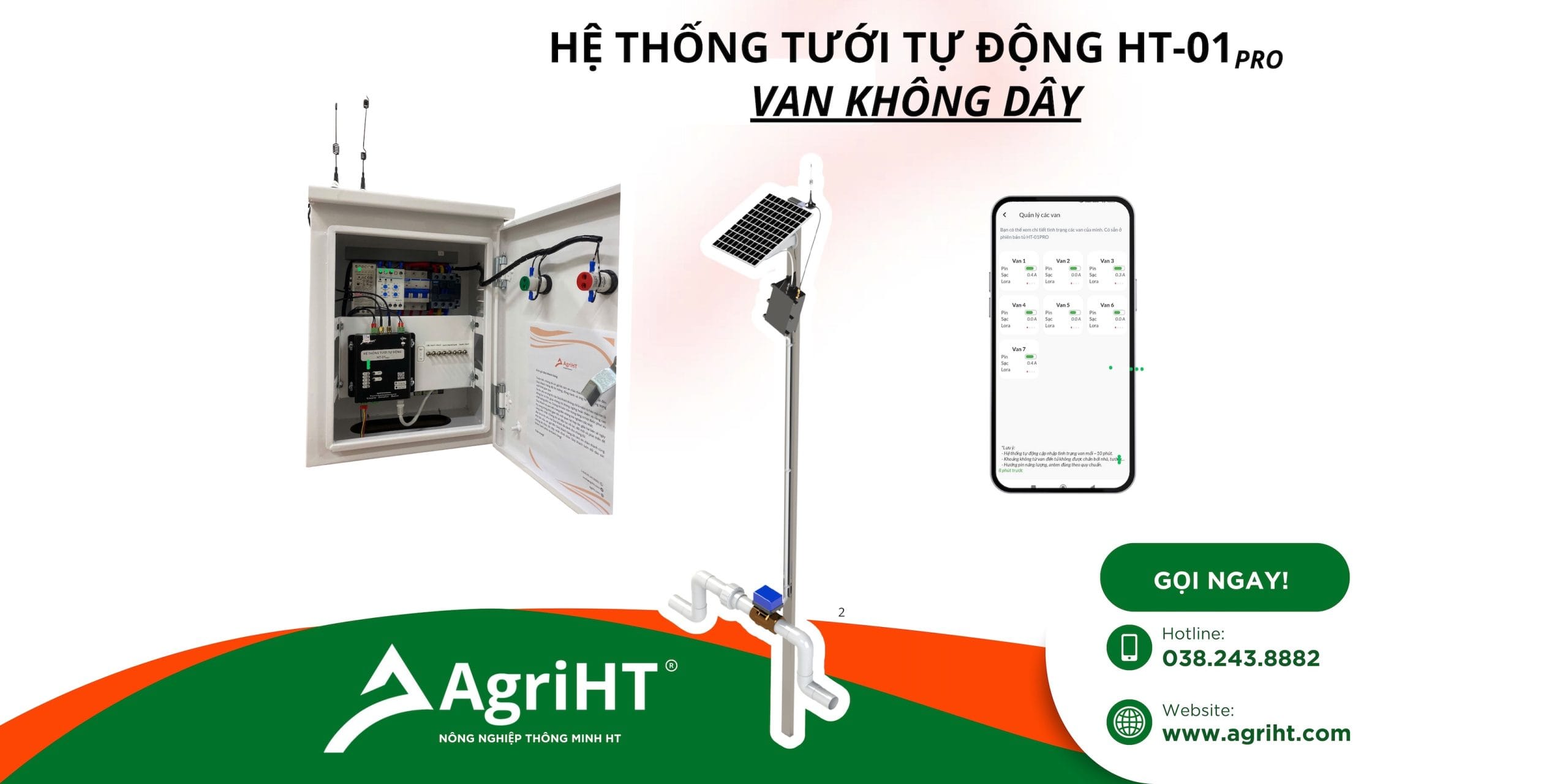 Đặc biệt, hệ thống tưới tự động HT-01 Pro của AgriHT còn sở hữu hệ thống van không dây vô cùng hiện đại chưa từng xuất hiện tại Việt Nam. Với hệ thống này, không chỉ tất cả mọi thứ đều được tự động, có thêm hệ thống van không dây, dù vườn của bạn có rộng lớn đến đâu cũng không tốn 1m dây điện nào. Quá là tiện lợi!