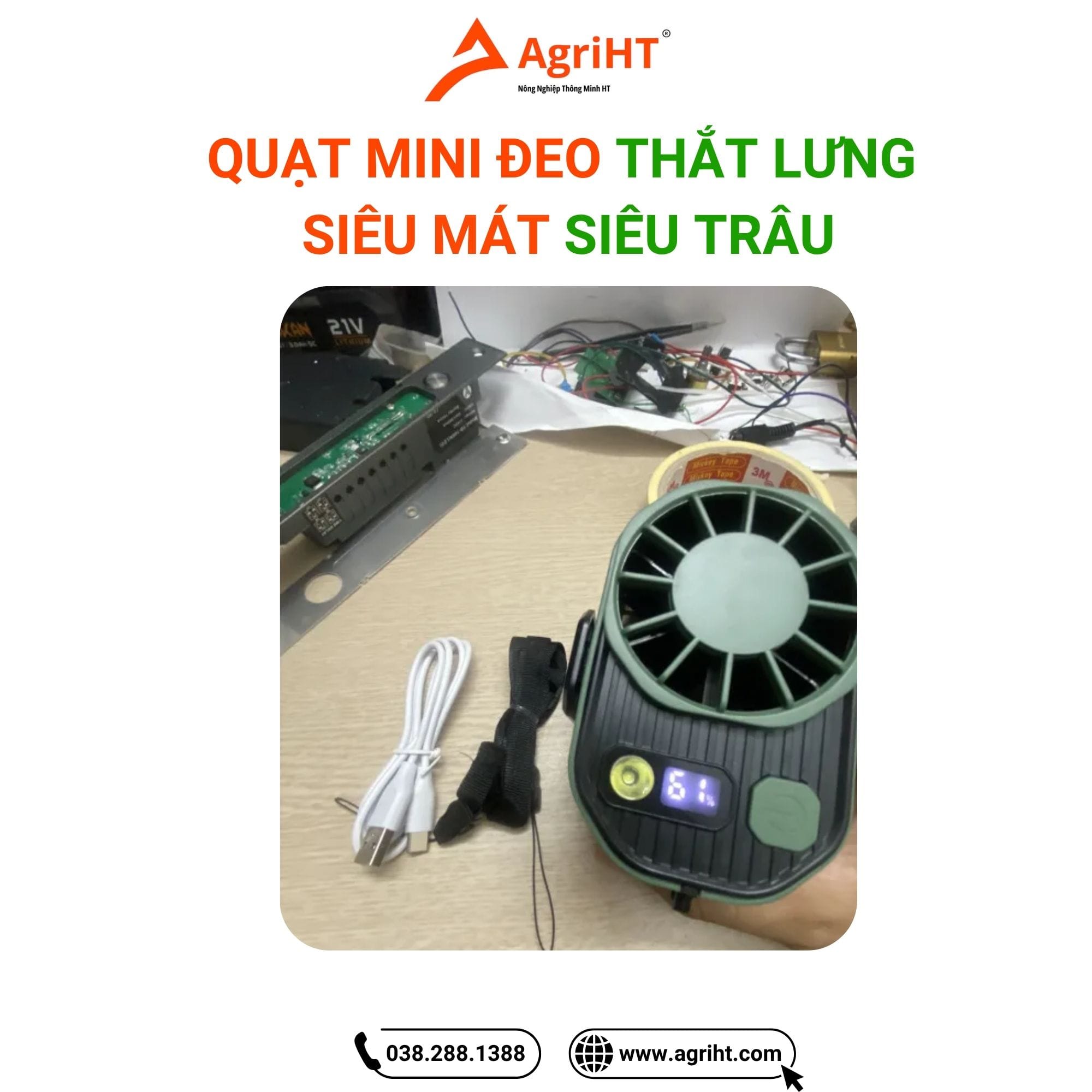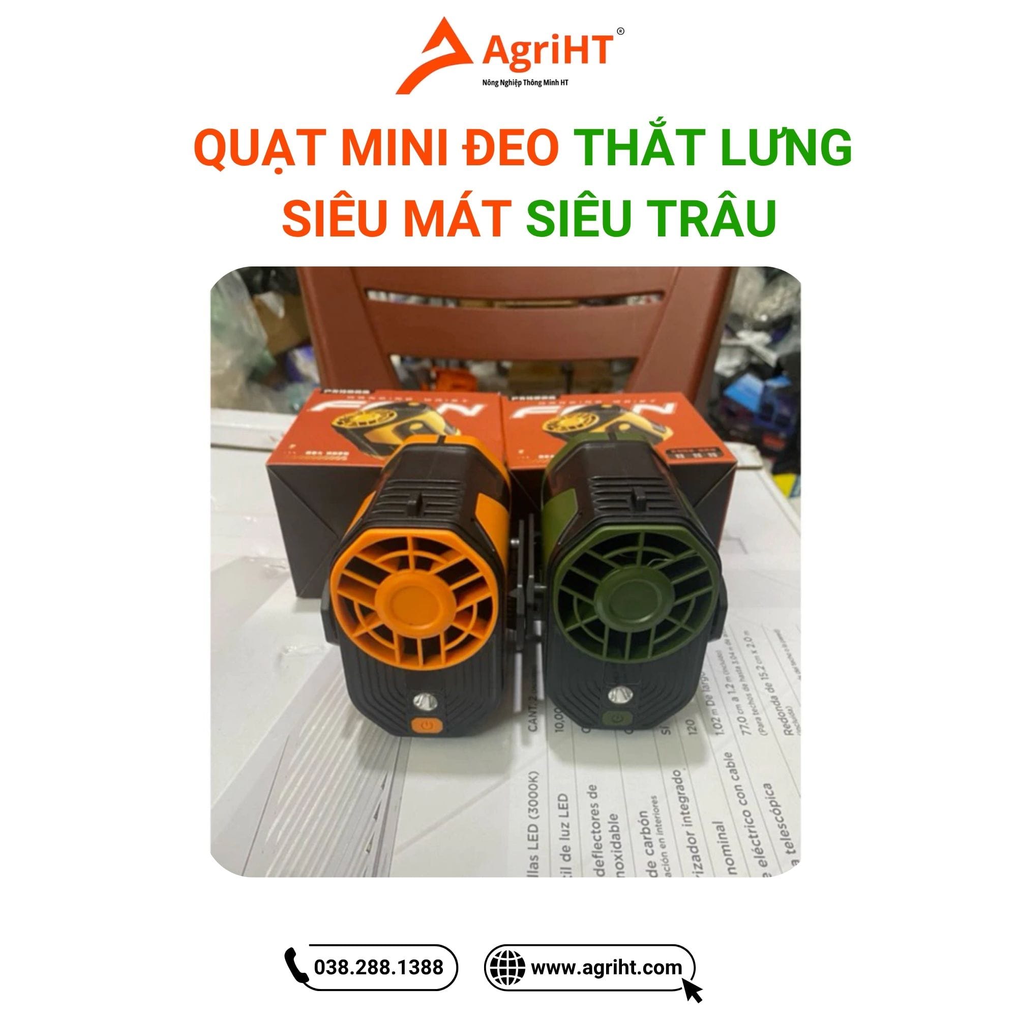 Thiết kế nhỏ gọn, đeo thắt lưng tiện lợi: Giúp giải phóng đôi tay, di chuyển thoải mái mà vẫn mát mẻ.