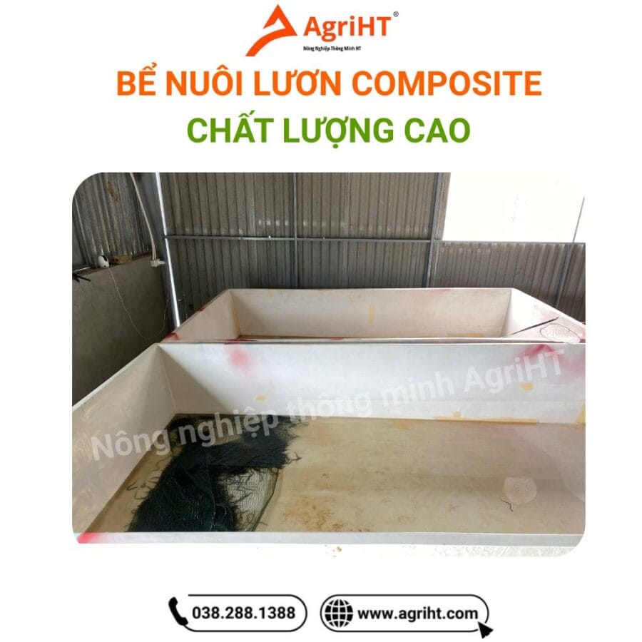 Bể composite được đúc nguyên khối, không có mối nối hay vết ghép, đảm bảo không rò rỉ nước, giúp kiểm soát mực nước và môi trường ổn định cho lươn phát triển.
