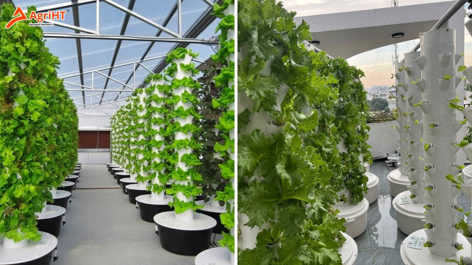 Bộ trụ thủy canh của AgriHT phù hợp trồng hầu hết các loại rau ăn lá như: